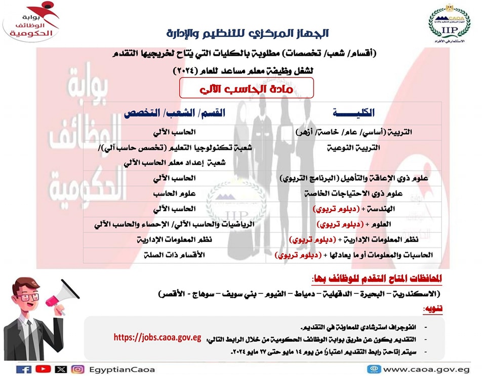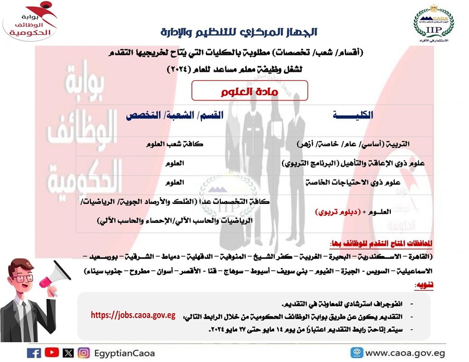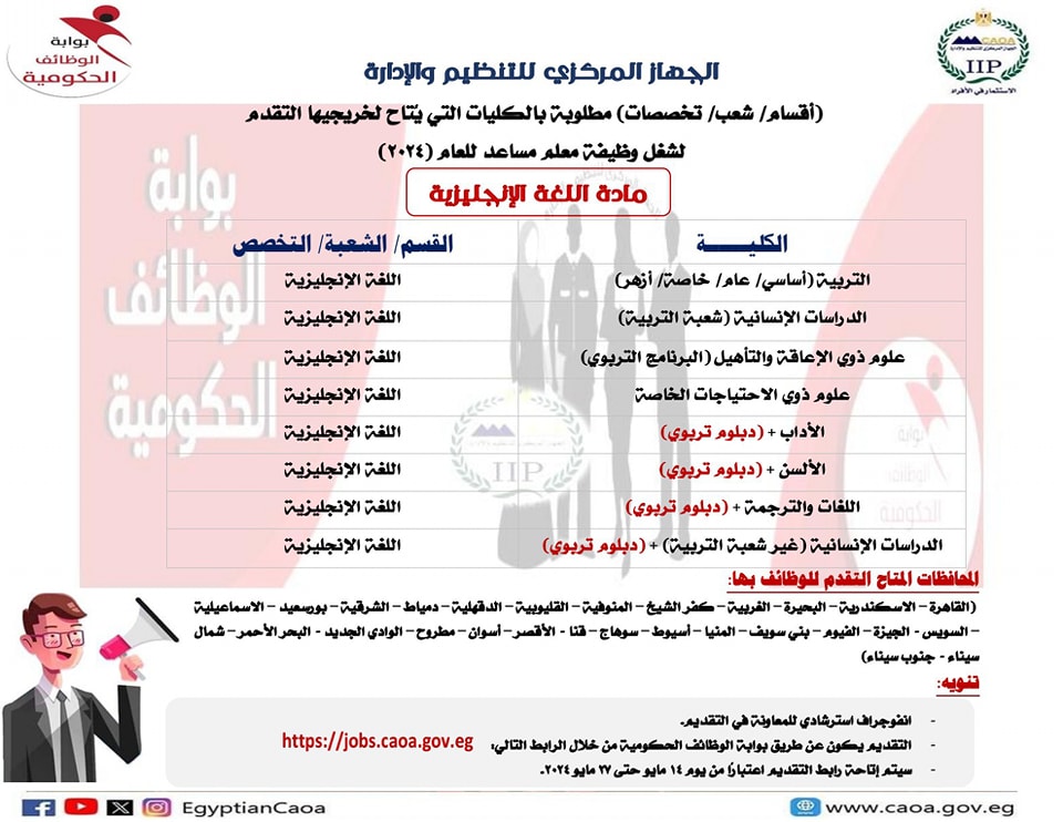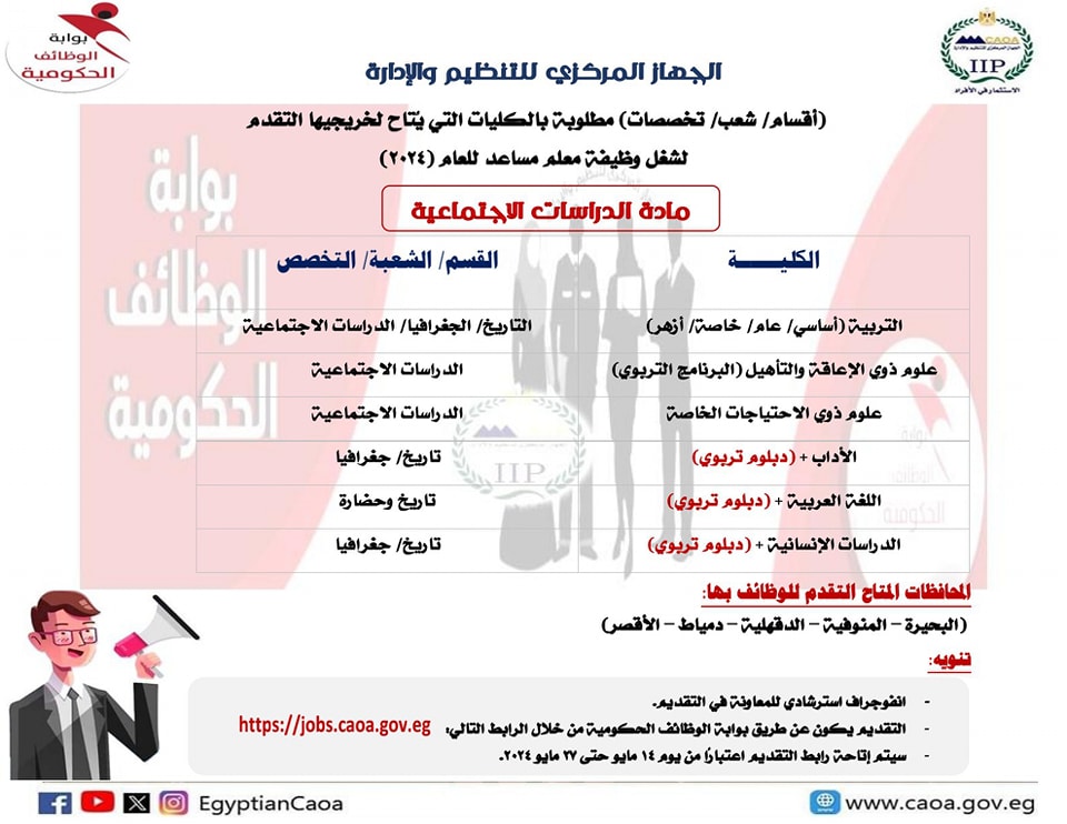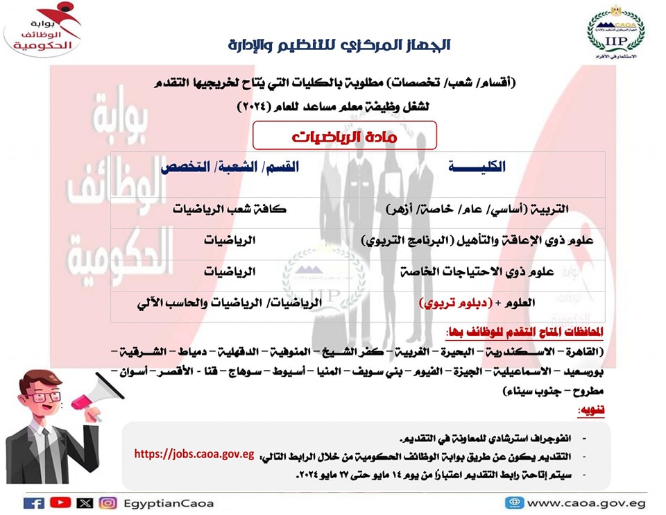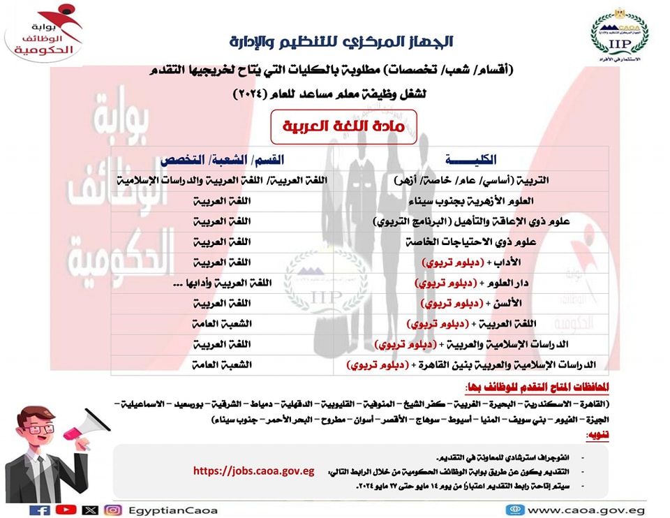 - يقتصر التقديم في وظيفة معلم مساعد على المصريين فقط.