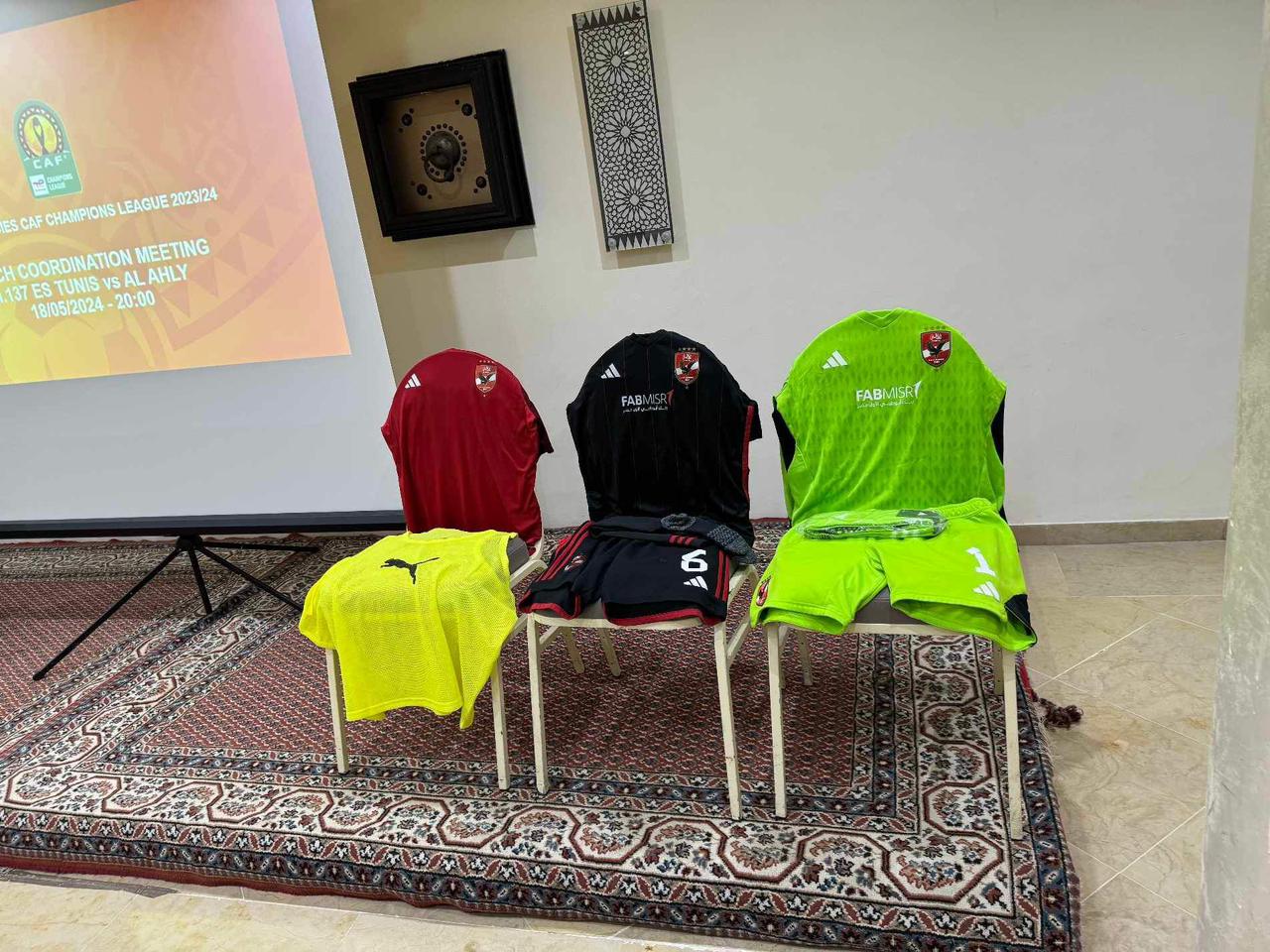 وخلال الاجتماع الفني تم الاتفاق على أن يرتدي الأهلي الطاقم الأسود، بينما يرتدي فريق الترجي زيه التقليدي المكون من القميص الأصفر والأحمر.