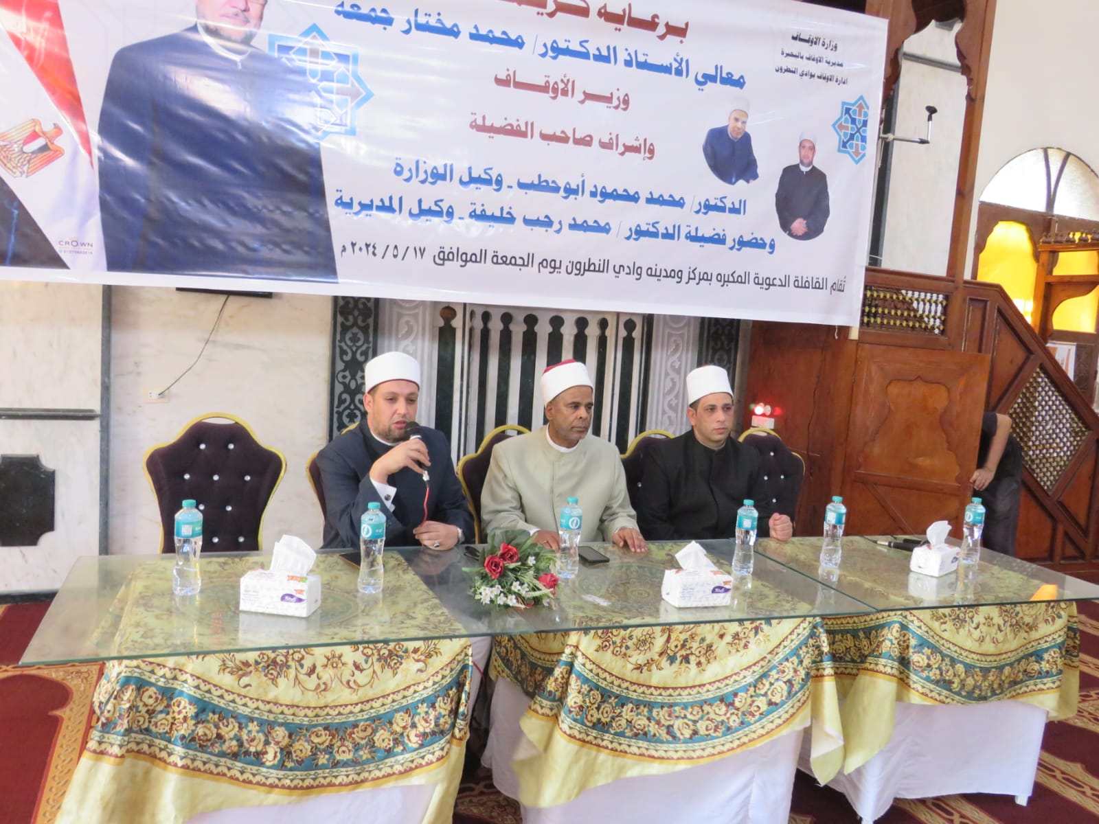 انطلقت اليوم الجمعة، بمركز ومدينة وادي النطرون بمحافظة البحيرة، فعاليات القافلة الدعوية المكبرة التي نظمتها مديرية الأوقاف بالبحيرة تحت رعاية الدكتور محمد مختار جمعة، وزير الأوقاف، والدكتورة نهال بلبع، نائب محافظ البحيرة.