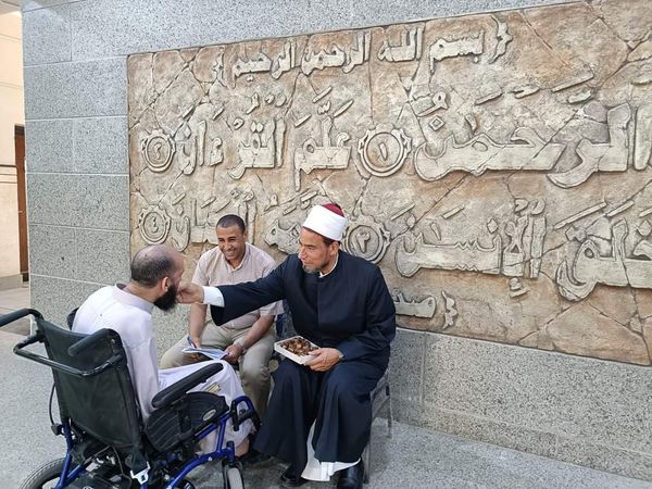 أطعمه تمرا وامتحنه بساحة الكلية.. عميد بالأزهر يثير إعجاب السوشيال ميديا بسبب طالب من أصحاب الهمم