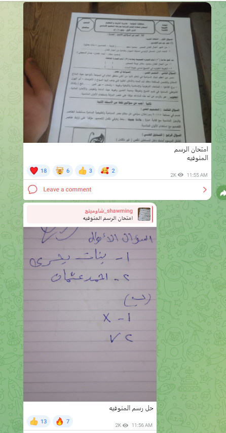 وكان من الملفت لأولياء الأمور أن يتم تسريب امتحان مادة التربية الفنية، وتنشر امتحاناتها قبل انعقادها، معلقين بقولهم: “حتى الرسم!”.+