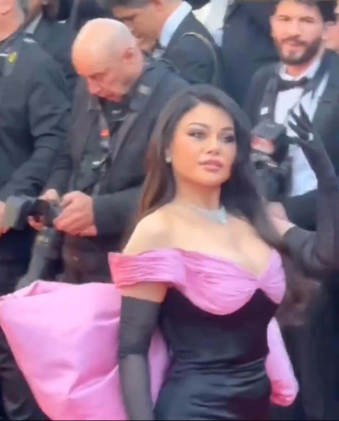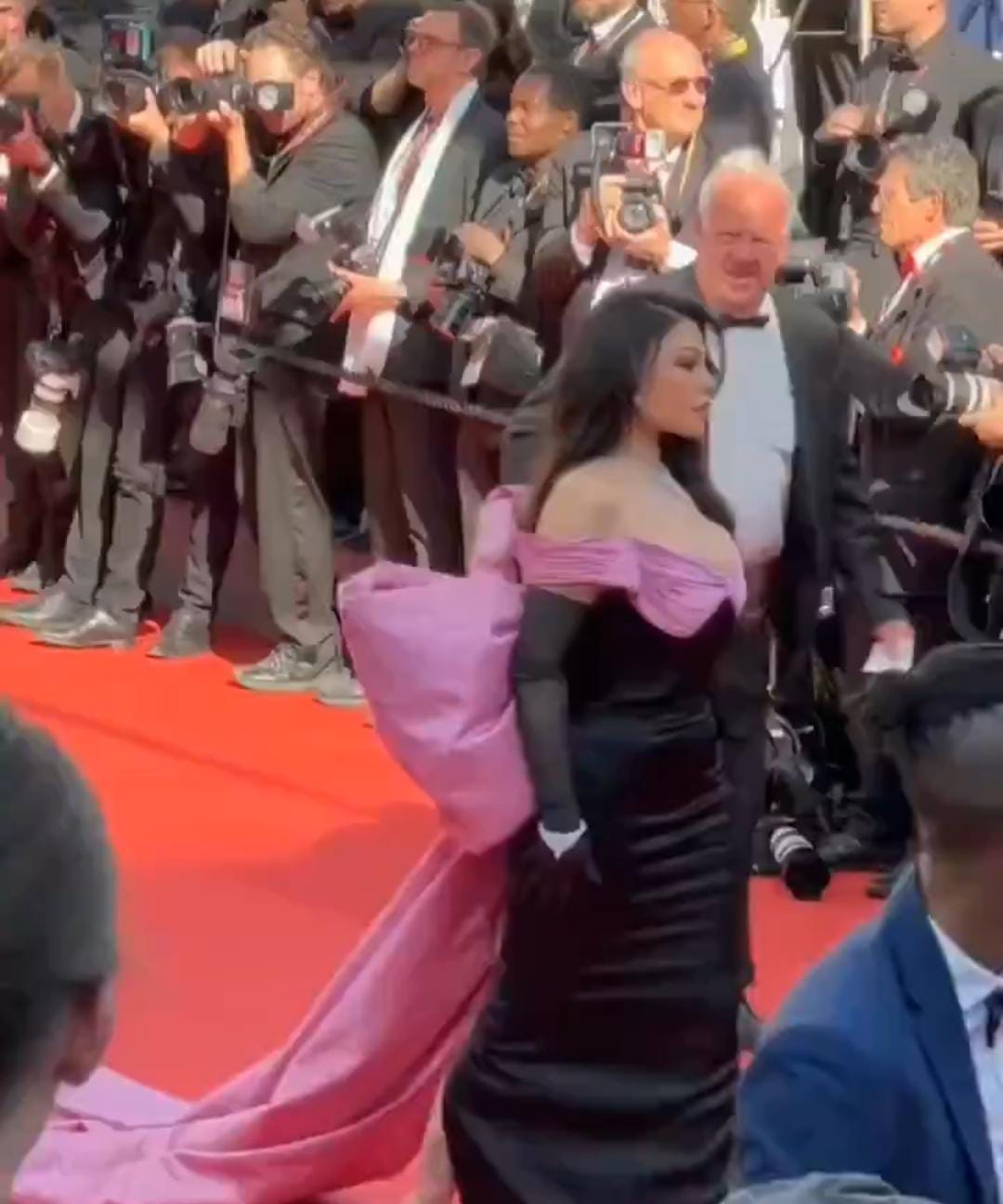 ظهرت الفنانة هيفاء وهبي على السجادة الحمراء لمهرجان كان السينمائي الدولي لدورته الـ77 وهي مرتدية فستان يشبه الفراشة.