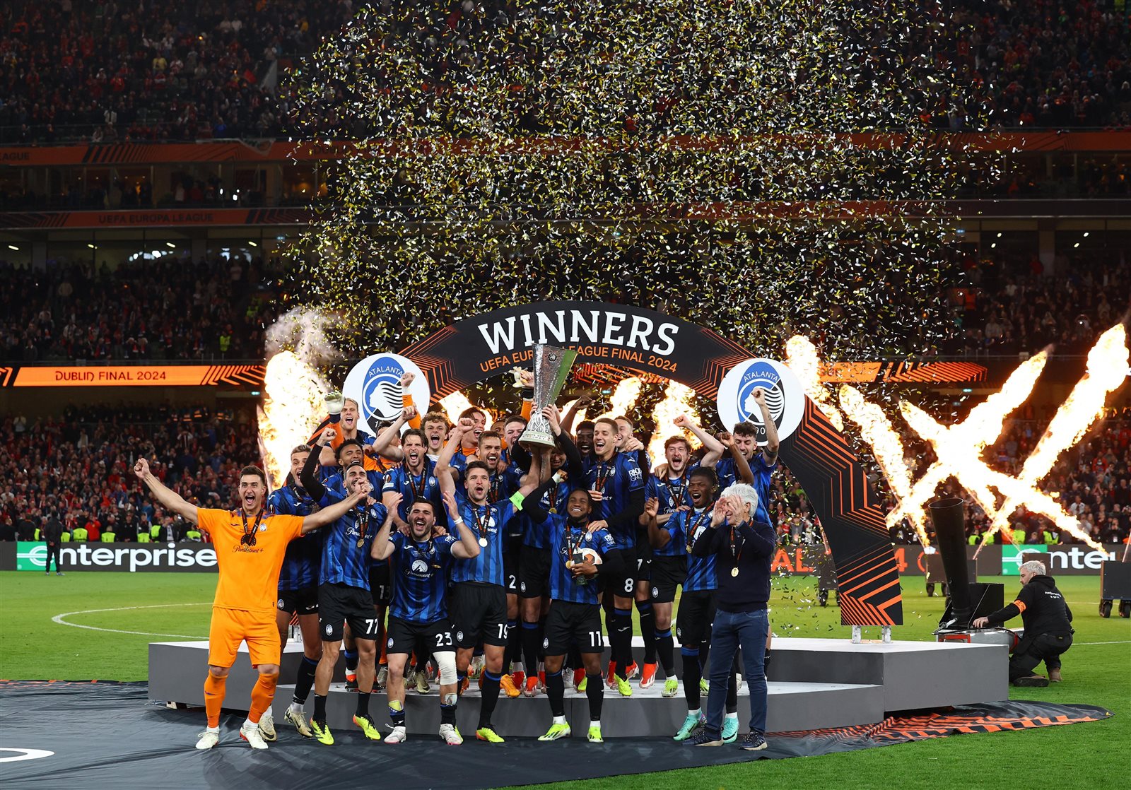 شهد ملعب دوبلين أرينا، الذي جمع بين نادي أتالانتا أمام نظيره باير ليفركوزن في نهائي الدوري الأوروبي العديد من الأجواء والمشاهد الجنونية، بعد تتويج الفريق الإيطالي باللقب الأوروبي.