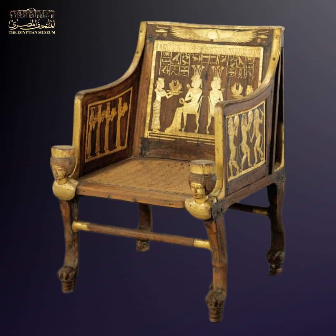 المتحف المصري بالتحرير يعرض كرسيّا خشبيّا مذهبا من الأسرة 18