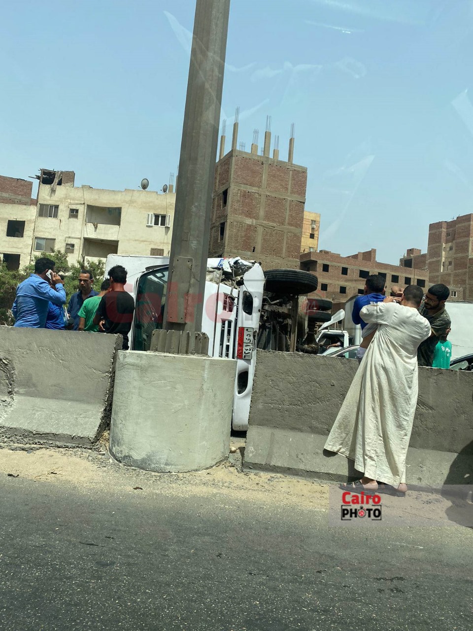 إصابة 3 أشخاص في تصادم سيارة نقل بملاكي أعلى الطريق الدائري |صور
