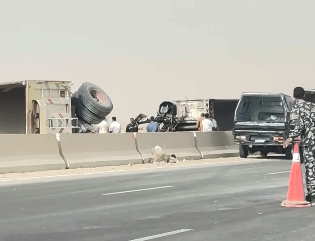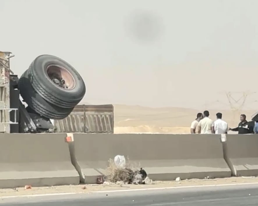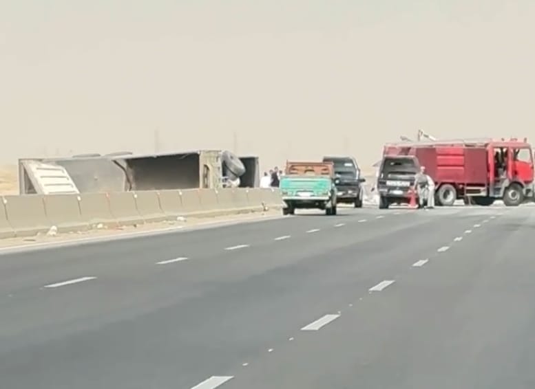 إغلاق جزئي لطريق القاهرة السويس بعد انقلاب سيارة نقل