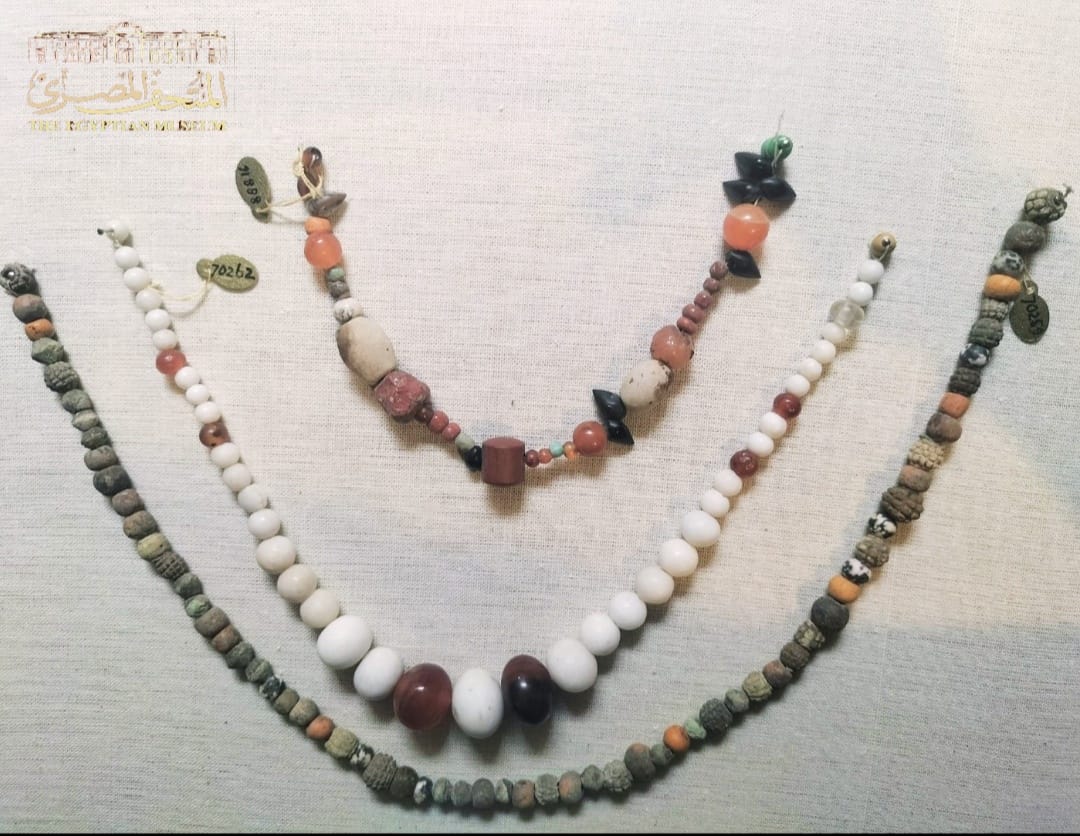 أعلنت إدارة المتحف المصري بالتحرير عرض مجموعة من الحُلي والعقود الملكية خرزاتها مصنوعة من مواد مختلفة من مصر القديمة، وتعرض بالرواق الشرقي بالدور الأرضي.
