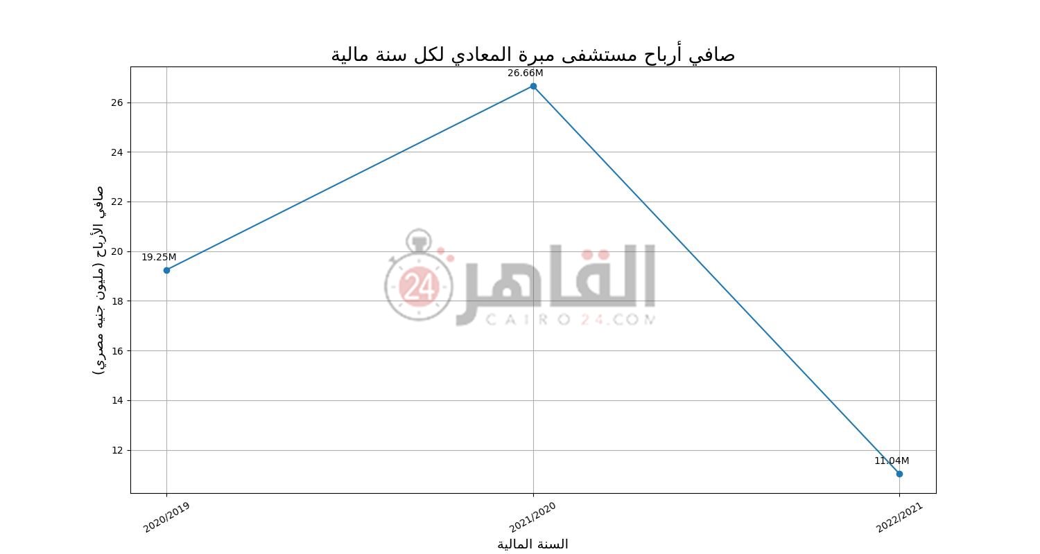 أظهر تقرير الإيرادات والمصروفات مستشفى مبرة المعادي عن 3 سنوات مالية ماضية، حصل عليها القاهرة 24، أن صافي أرباح المستشفى سجل أعلى رقم في عام 2020 / 2021 فترة جائحة كورونا وتلتها انخفاض شديد في الأرباح بالسنة المالية 2021 / 2022، لم تسجل خسائر عن إجمالي كل سنة مالية.