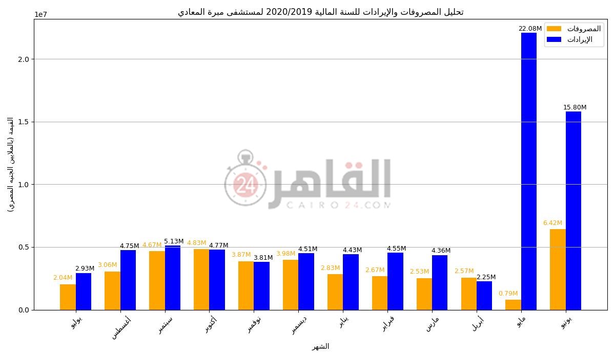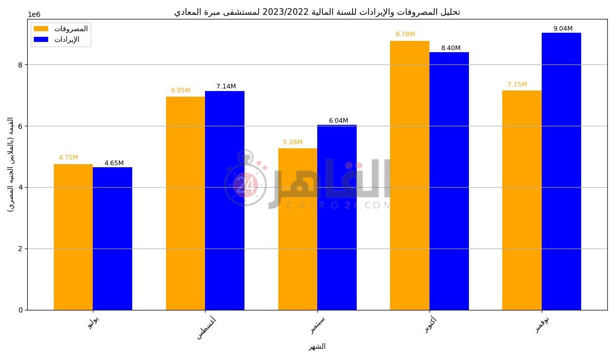 وبتحليل البيانات المتاحة من إيرادات ومصروفات عن الفترة من العام والمالي 2020/2019 وحتى الشهور الخمسة الأولى من العام المالي 2023/2022، أظهرت أن المستشفى تحقق صافي أرباح عن كل عام مالي بخلاف ما وصفه الوزير بأنها تخسر، كما تلاحظ أن شهري أكتوبر ونوفمبر من أكثر الشهور التي تحقق فيها مستشفى مبرة المعادي خسائر في الأرباح، وأكثر الشهور ربحية هو يونيو حيث نهاية السنة المالية وتقفيل الميزانية.