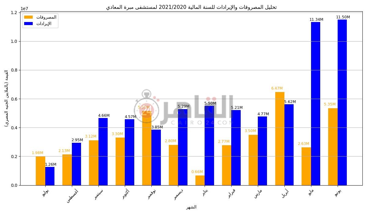 وأظهر تحليل إيرادات ومصروفات العام المالي 2021/2020 للمستشفى تحقيق أرباح في 9 أشهر وخسائر في 3 أشهر وهم يوليو ونوفمبر 2020، وأبريل 2021.
