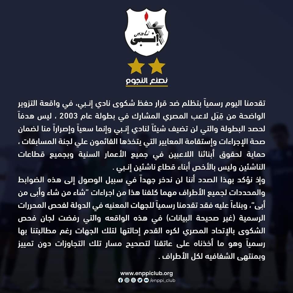 وجاء بيان نادي إنبي كالتالي: