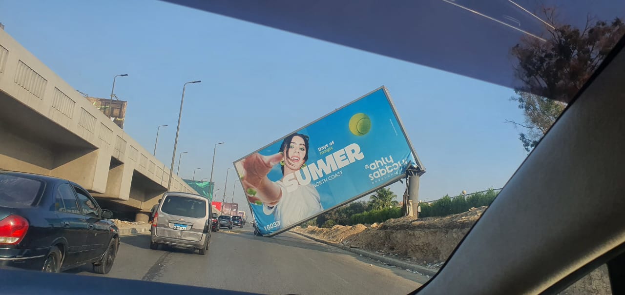 سقوط لافتة إعلانية كبيرة بطريق الواحات في أكتوبر