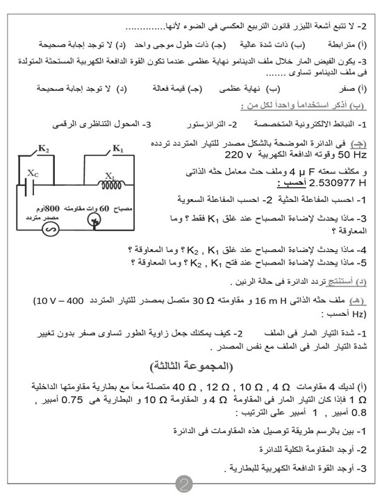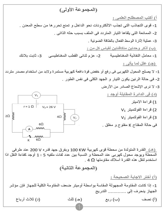 نماذج لأسئلة الفيزياء في الثانوية العامة 2024