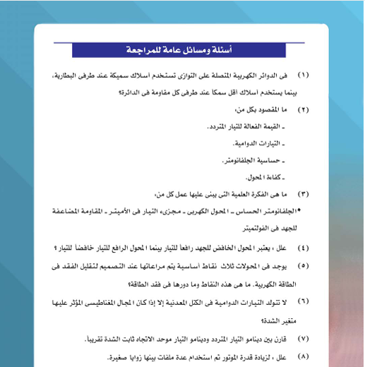 ويتضمن منهج الفيزياء للصف الثالث الثانوي العام على وحدتين فقط، الوحدة الأولى بعنوان الكهربية التيارية والكهرومغناطيسية، ويندرج تحتها أربع فصول، الفصل الأول، التيار الكهربي وقانون أوم وقانون كيرشوف، الفصل الثاني، التأثير المغناطيسي للتيار الكهربي وأجهزة القياس الكهربي، الفصل الثالث، الحث الكهرومغناطيسي، والفصل الرابع من الوحدة الأولى بعنوان دوائر التيار المتردد.