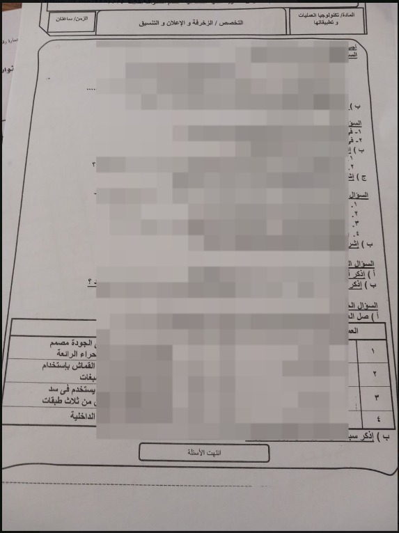 ونشر أدمن شاومينج صورة زعم أنها خاصة بامتحان التكنولوجيا والمعلومات الخاص بطلاب قسم الزخرفة، وكذلك جزء من امتحان مادة المرافعات عن قانون المرافعات، معلقًا: الحل بعد دقائق.