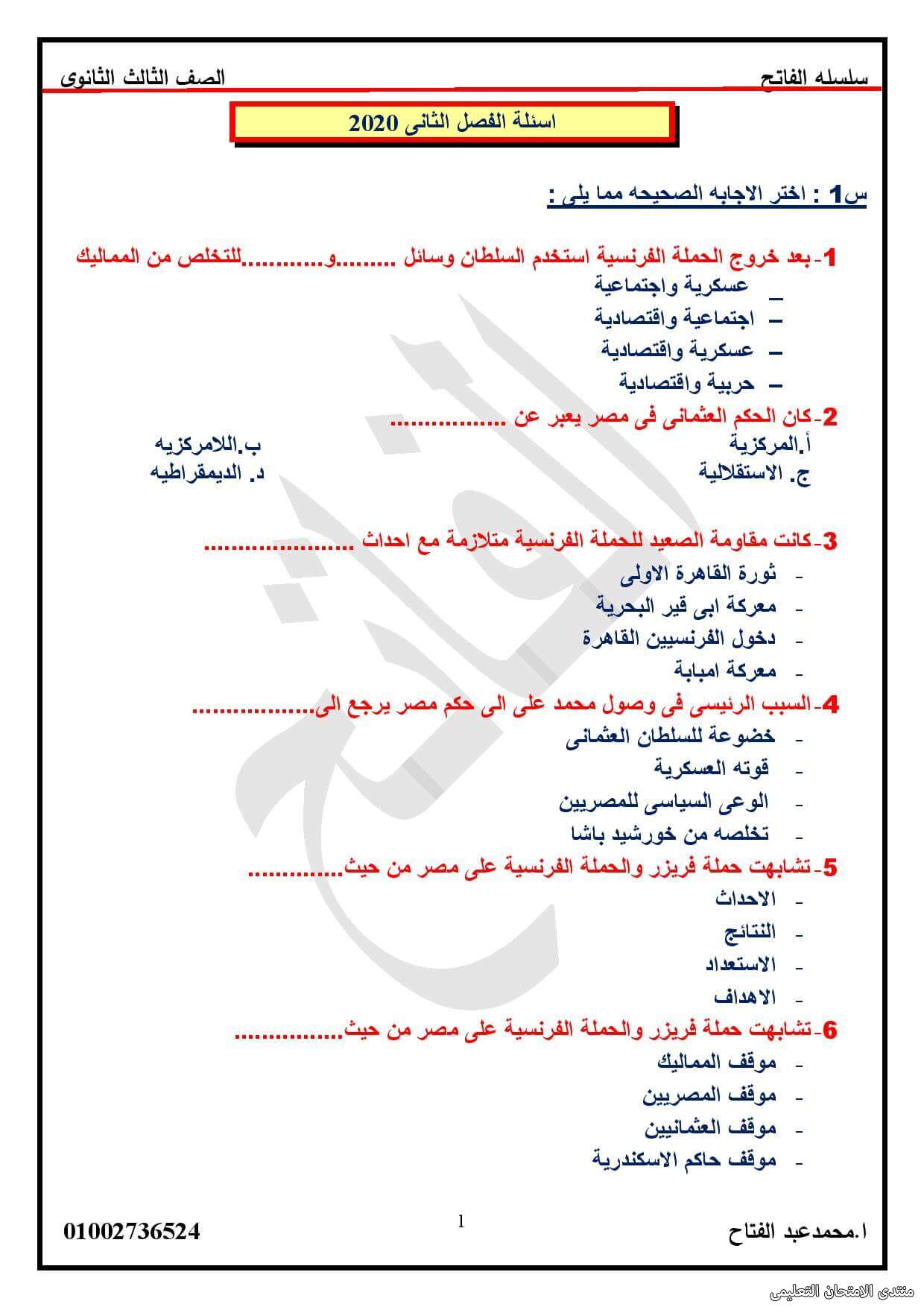 توقعات أسئلة الثانوية العامة 2024 في مادة التاريخ