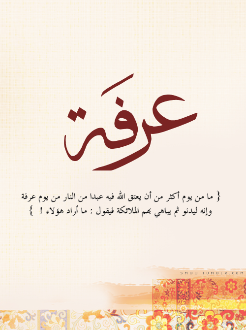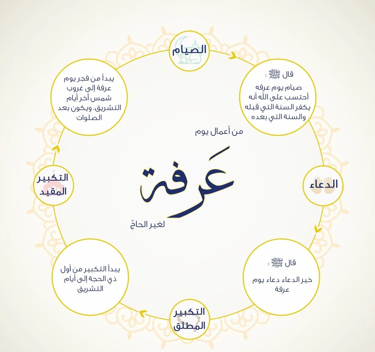 - ركن من أركان الحج لا يصح إلا به، وهو يوم للتكبير للحجاج، إذ قال النبي صلى الله عليه وسلم "الحَجّ عَرَفةٌ -أوْ عَرَفاتٌ- فمَنْ أَدْرَكَ عَرَفةَ قبلَ طُلوعِ الفَجْرِ فقد أَدْرَكَ الحَجَّ".