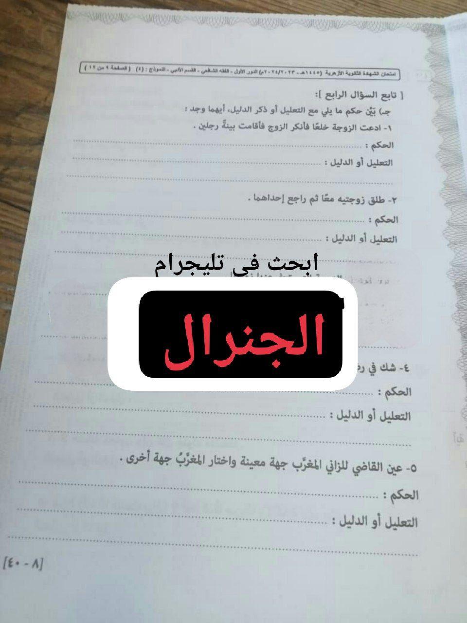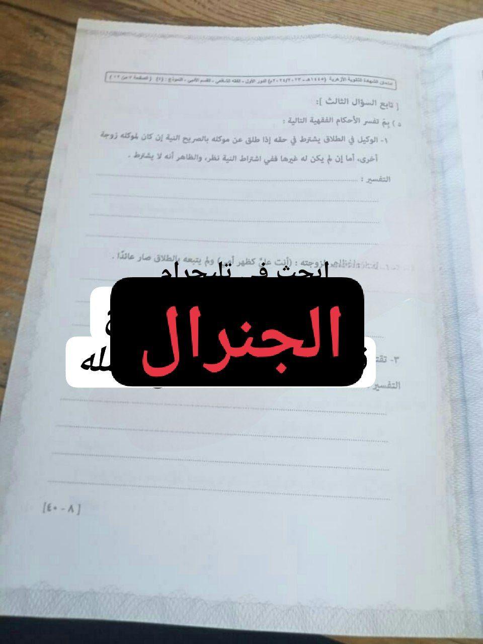 شاومينج يزعم نشر أجزاء لامتحان الفقه لطلاب الشعبة الأدبية بالشهادة الأزهرية| صور