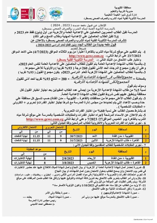 وفيما يلي نعرض أماكن مدارس مياه الشرب والصرف الصحي 2024:
