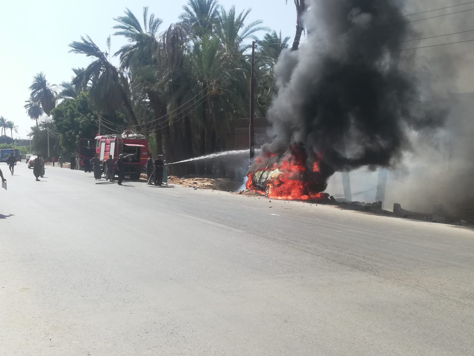وتلقى اللواء وائل نصار مدير أمن أسيوط إخطارا من مأمور مركز شرطة أسيوط، يفيد بورود بلاغ من الأهالي بنشوب حريق بسيارة إثر اصطدامها بنخلة على طريق قرية الشغبة التابعة إلى مركز أسيوط.