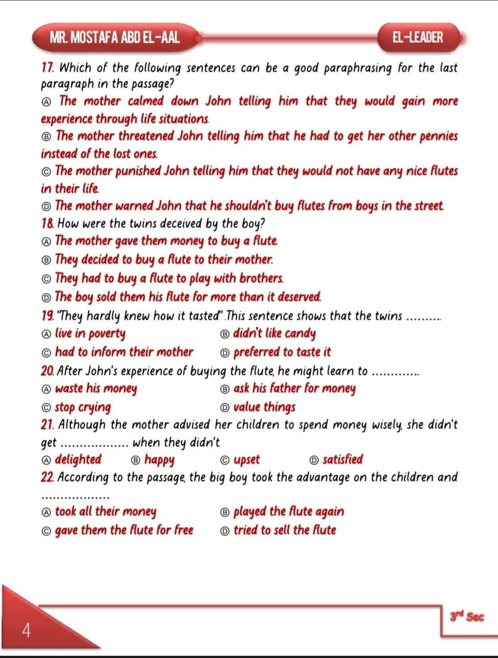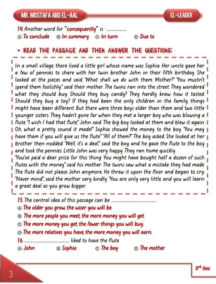 نماذج امتحانات الثانوية العامة في اللغة الإنجليزية
