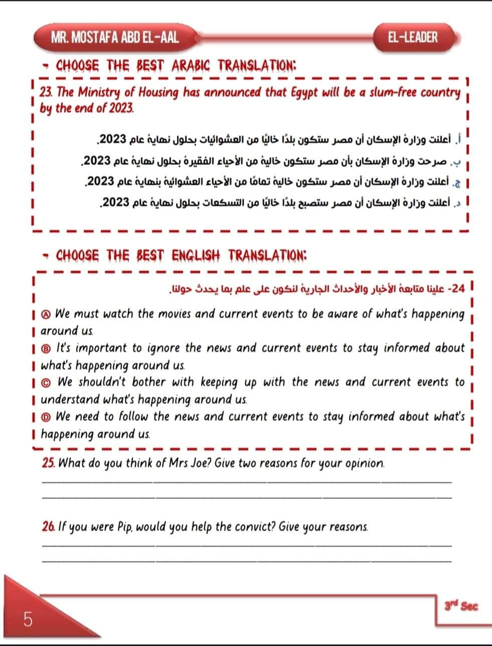 مراجعة اللغة الإنجليزية للثانوية العامة 2024
