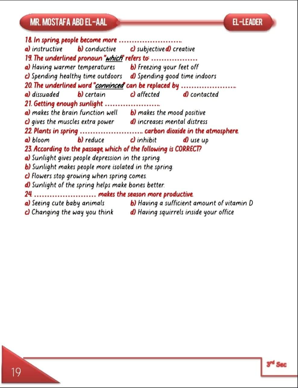 أسئلة امتحان الإنجليزي للصف الثالث الثانوي العام 2024