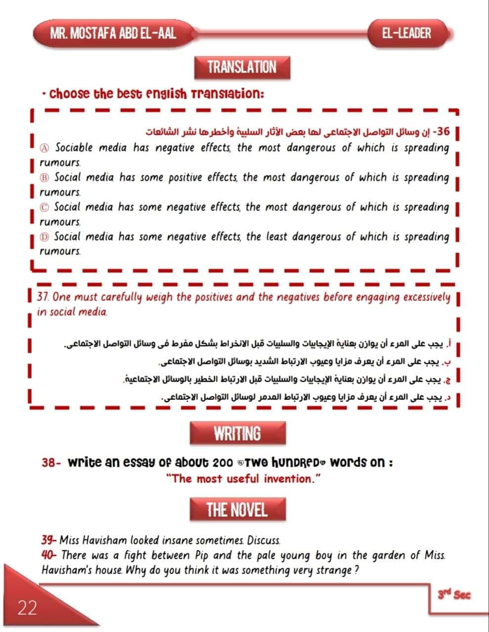 - إجمالي عدد أسئلة اللغة الإنجليزية 37 سؤالا.