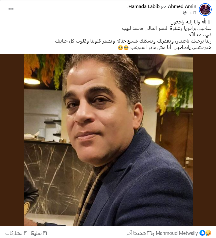 توفي المخرج والناقد الفني محمد لبيب منذ قليل، حيث نعاه مجموعة من أصدقائه عبر حساباتهم بموقع فيس بوك.