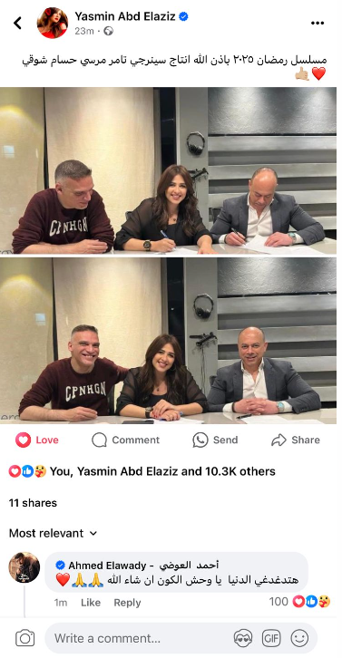 هنأ الفنان أحمد العوضي طليقته الفنانة ياسمين عبد العزيز، بعد تعاقدها على مسلسلها الرمضاني الجديد لعام 2025.