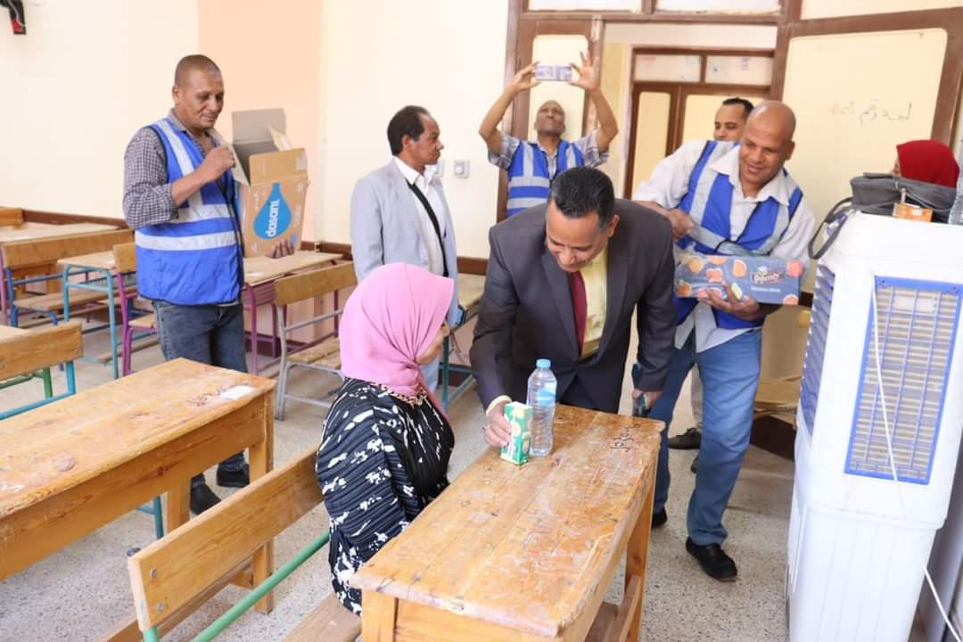 توزيع عصائر ومياه على طلاب الثانوية العامة داخل لجان الوادي الجديد| صور