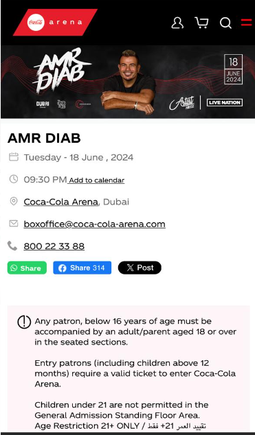 ونشرت الشركة المنظمة أبرز شروط حفل عمرو دياب في دبي وجاءت كالتالي: