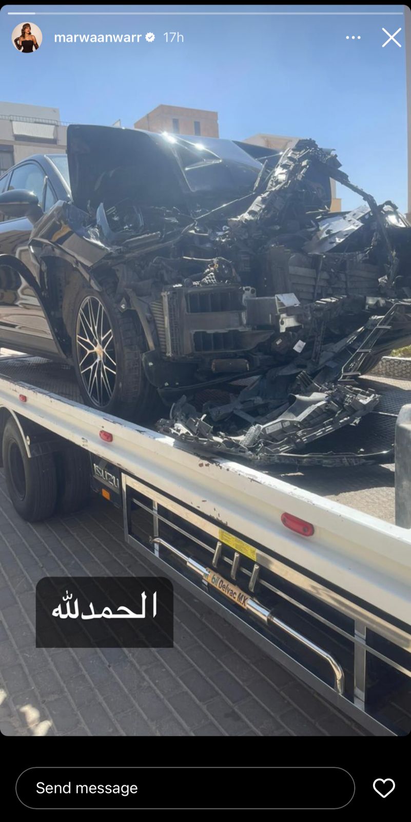 أعلنت الفنانة مروة أنور، شقيقة الفنان خالد أنور، تعرضها لحادث سير مروع، وتحطم جزء كبير من سيارتها الخاصة.