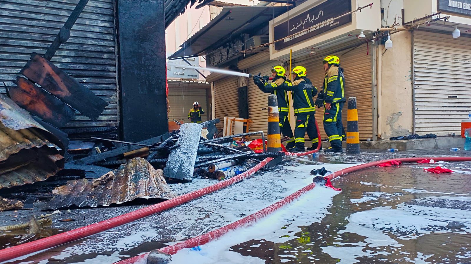 الدفع بـ 16 آلية و63 ضابطًا وفردًا.. الدفاع المدني يحاول إخماد حريق سوق المنامة بالبحرين