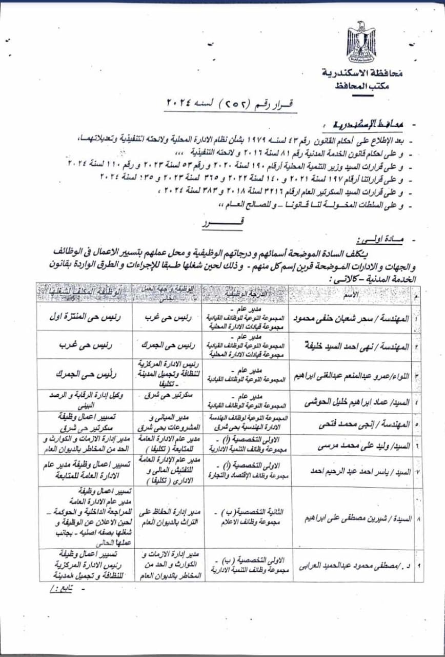 حركة تنقلات داخلية لرؤساء الأحياء في الإسكندرية| أسماء