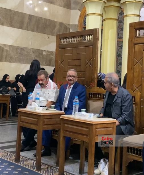 محمد محمود يقدم واجب العزاء في وفاة مها عطية بمسجد عمر مكرم