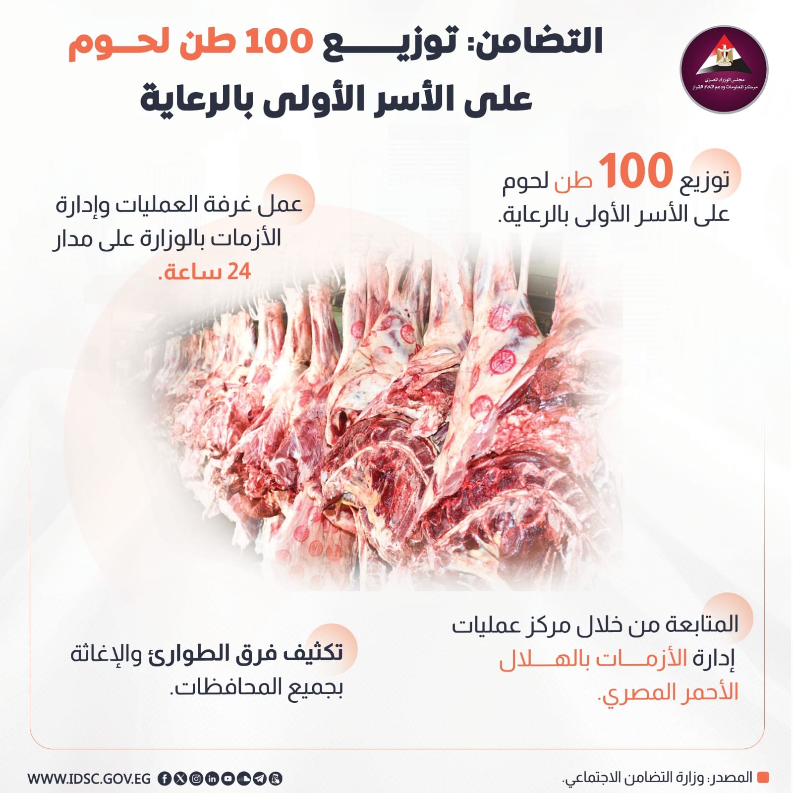 توزيع 100 طن لحوم على الأسر الأولى بالرعاية.