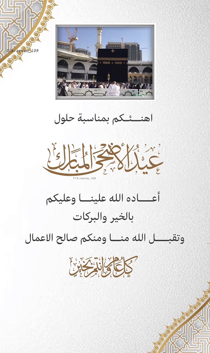 - أهنئكم بعيد الأضحى المبارك وأدعو الله لي ولكم قبول الأعمال.