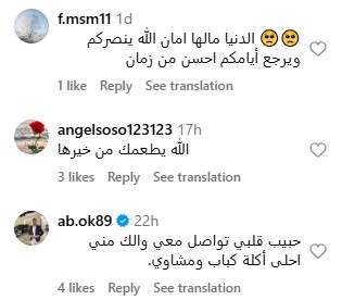 وعلق أحد المتابعين: الدنيا مالها أمان الله ينصركم ويرجع أيامكم أحسن من زمان، وقال شخص آخر: الله يطعمك من خيرها، وتفاعل متابع آخر: حبيب قلبي تواصل معي ولك مني أحلى أكلة كباب ومشاوي، وقال آخر: بكرة بإذن الله تكون صاحب محلات أكل عالمية، وافتكر إني قولتلك كده.