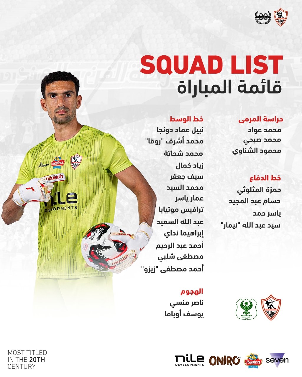 أعلن الجهاز الفني للفريق الأول لكرة القدم بنادي الزمالك بقيادة البرتغالي جوزيه جوميز، القائمة التي سيخوض بها الفريق مباراة المصري البورسعيدي.