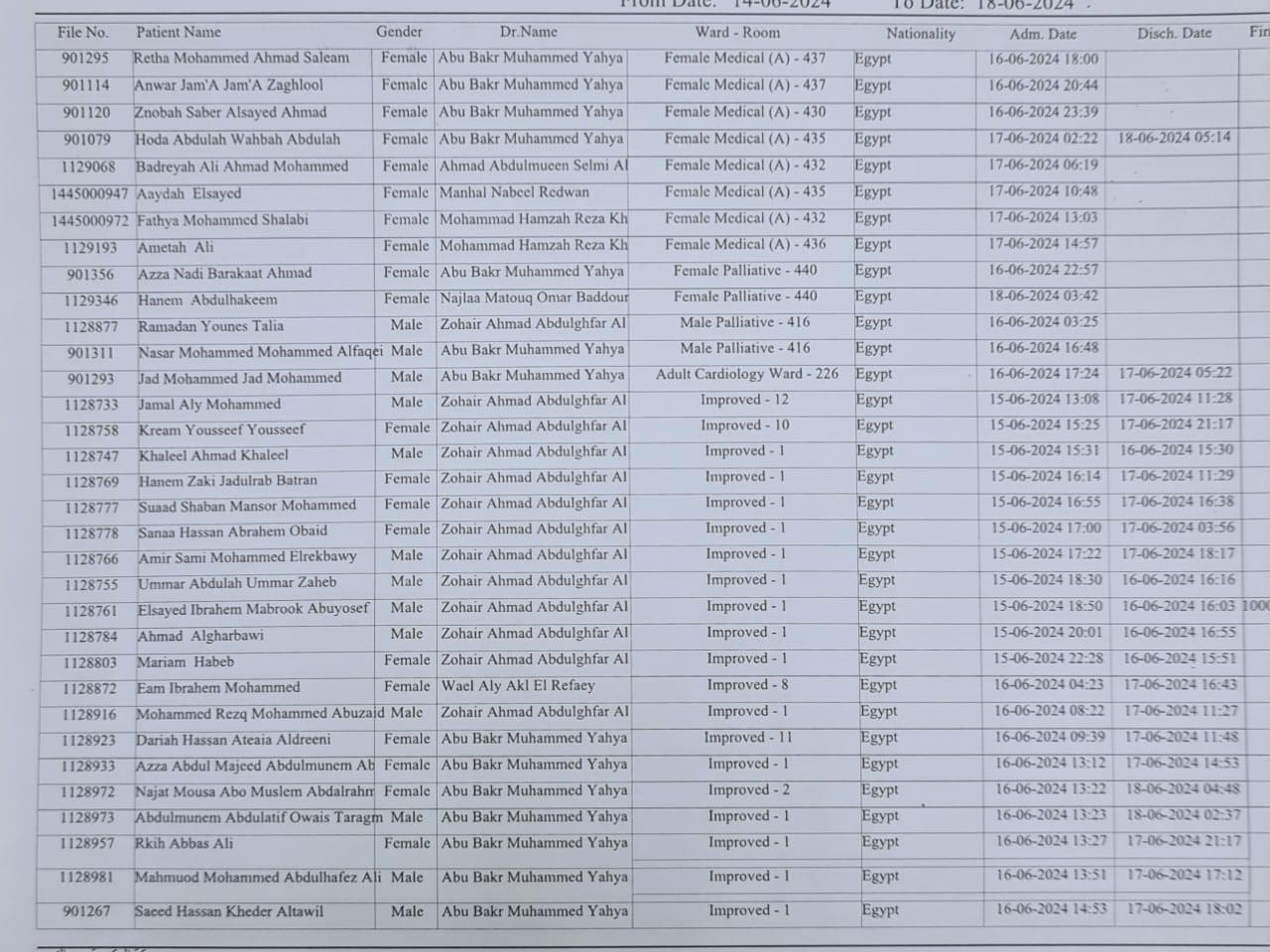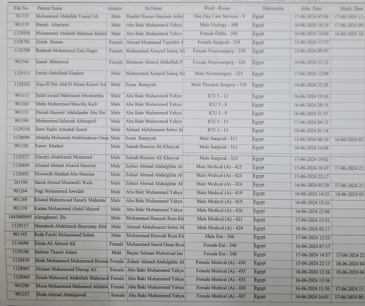 أسماء المصريين المحجوزين بمستشفى نور