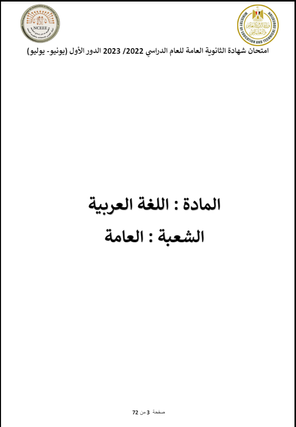 ولحصول طلاب الثانوية العامة على أسئلة امتحانات الثانوية العامة 2022 -2023 ونموذج امتحان العربي ثانوية عامة 2023، يمكن الضغط على الملف التالي الذي يوجد به أسئلة امتحانات الثانوية العامة 2022 -2023 ونموذج امتحان العربي ثانوية عامة 2023 المعلنة من وزارة التربية والتعليم والتعليم الفني عبر موقعها الرسمي، كما يمكن للطلاب الحصول على أسئلة امتحانات الثانوية العامة 2022 -2023 في جميع المواد من الرابط التالي .