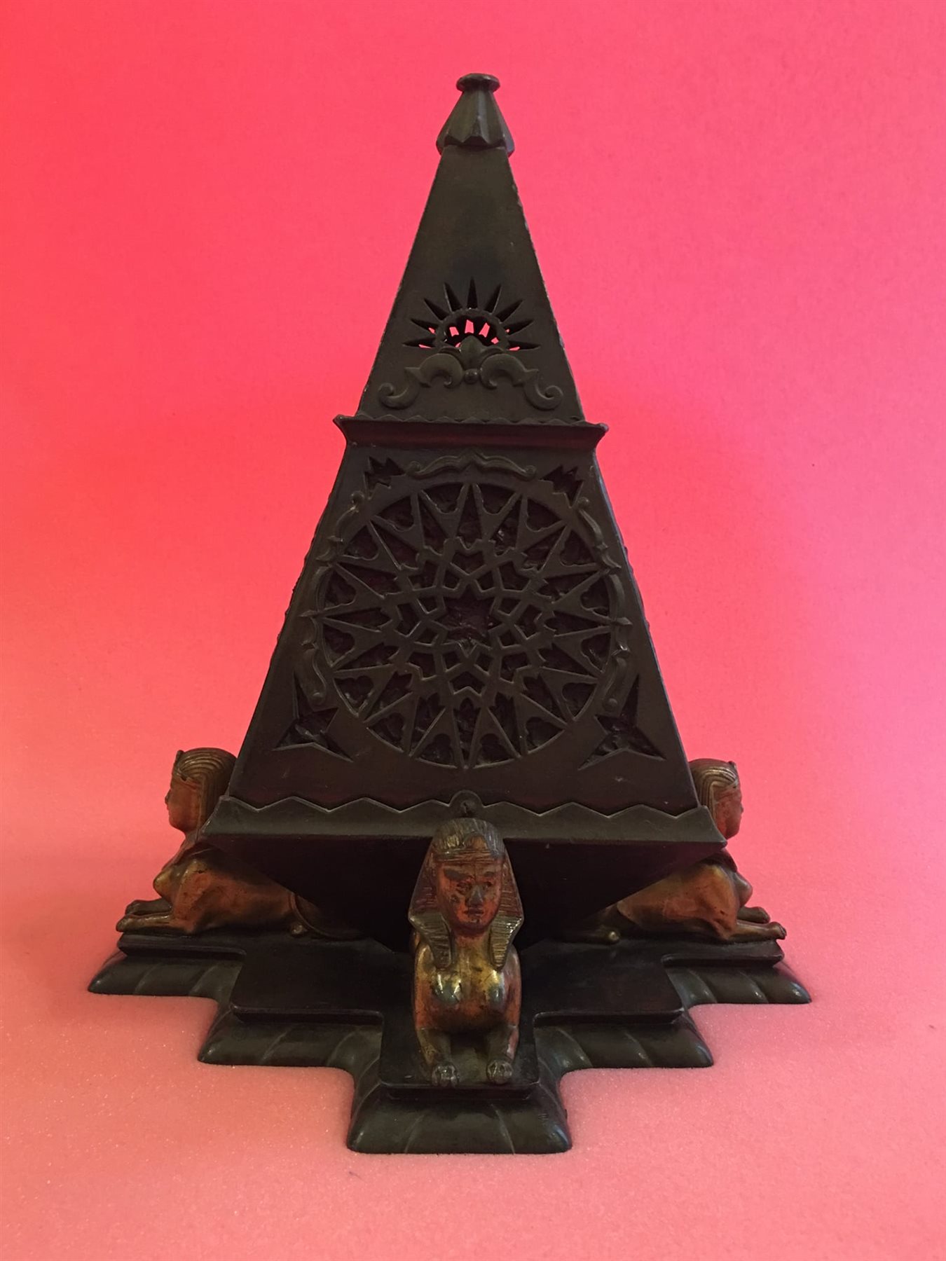 أعلنت إدارة متحف ركن فاروق، عن عرض قطعة أثرية فريدة وهى عبارة عن لمبة مكتب من البرونز بشكل هرمي ينقسم البدن إلي جزئيين.