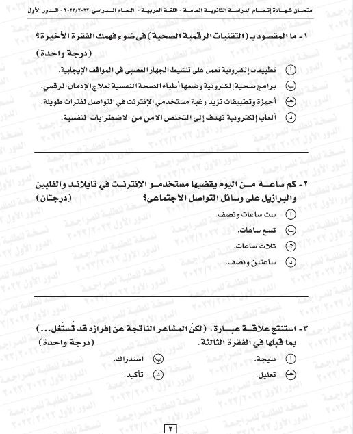 - وصل عدد الأسئلة في مادة اللغة العربية بدرجة واحدة: 44 سؤالا
