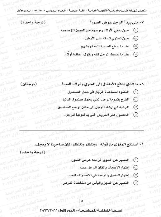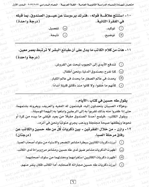 - عدد الأسئلة في مادة اللغة العربية التي تصل درجاتها إلى 6 درجات: سؤال واحد