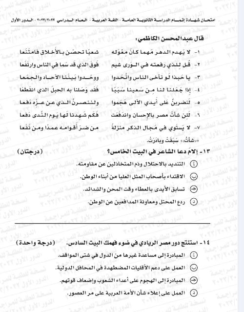 طرحت وزارة التربية والتعليم بعض نماذج الامتحان في مادة اللغة العربية للثانوية العامة، وذلك لتهيئة طلاب الصف الثالث الثانوي، قبل دخول الامتحان النهائي، وجاءت بعض النماذج كالآتي: