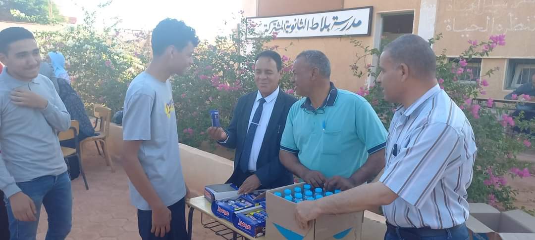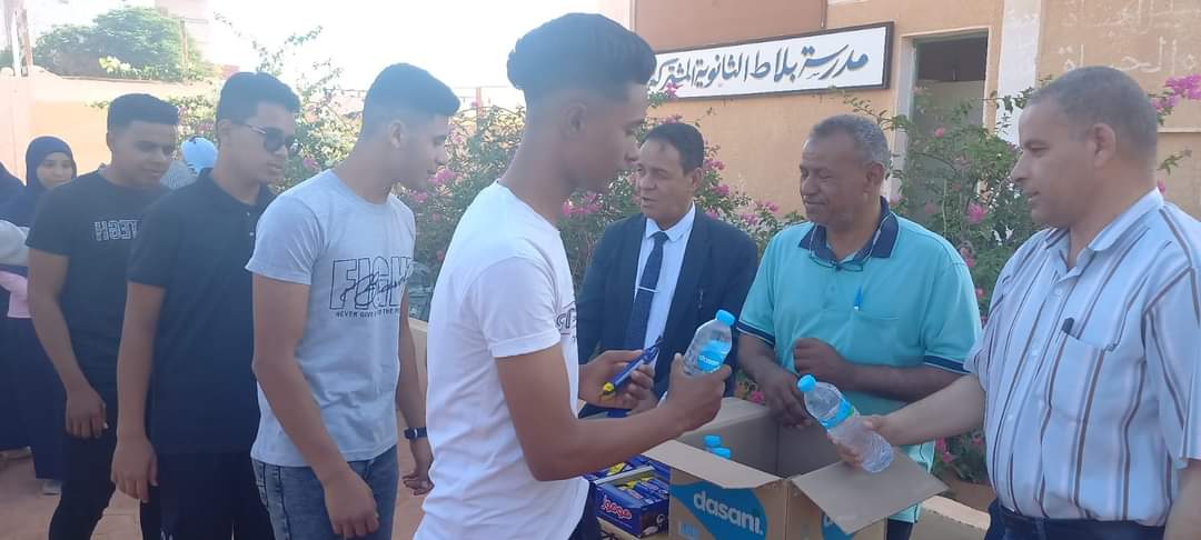 توزيع زجاجات مياه وبسكويت على طلاب الثانوية العامة في الوادي الجديد| صور