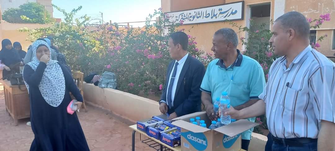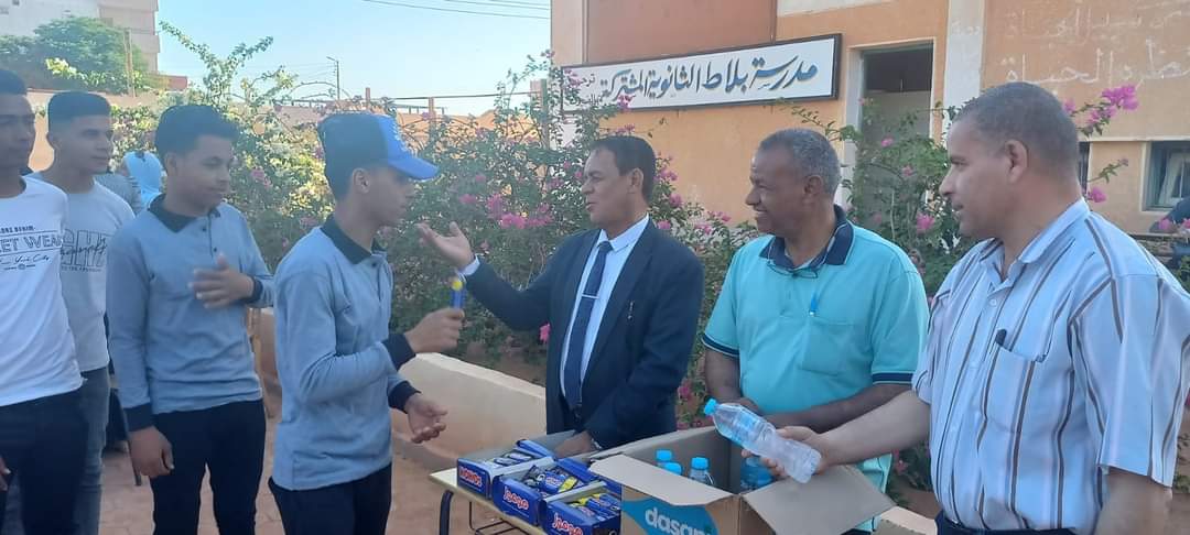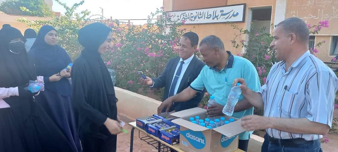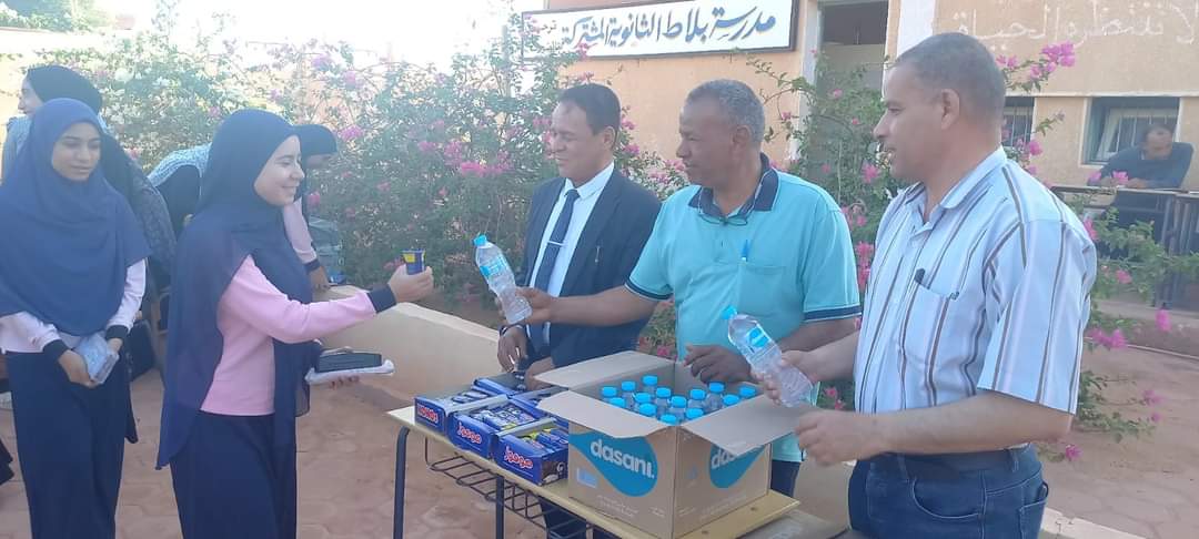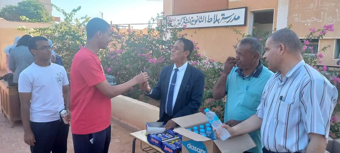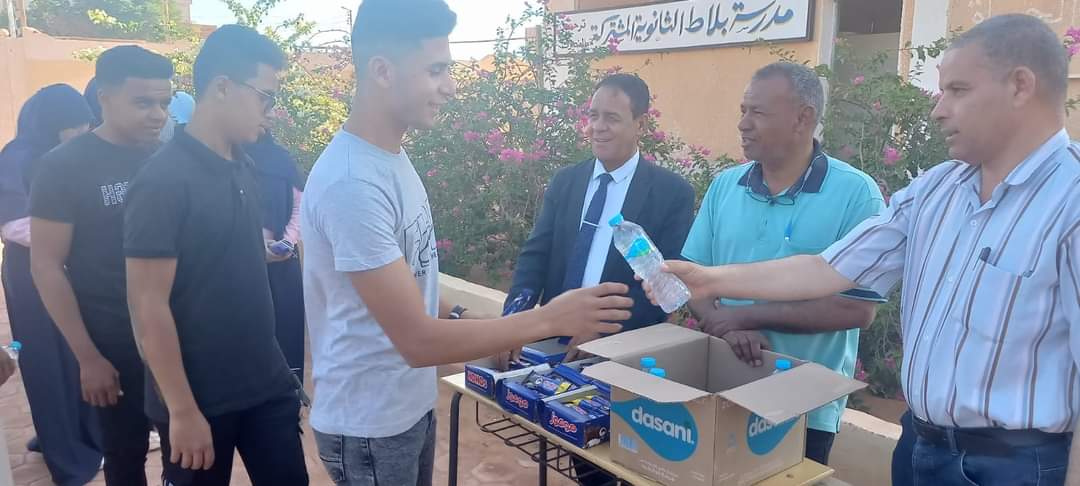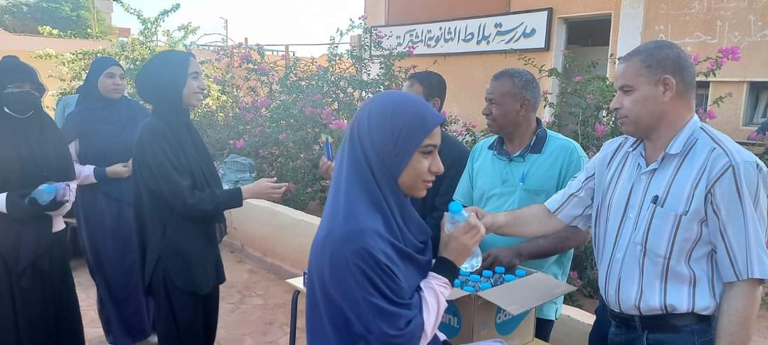 وزعت محافظة الوادى الجديد زجاجات مياه وبسكويت على طلاب الثانوية العامه قبل دخولهم اللجان لأداء امتحان اللغة العربية نظرًا للارتفاع الشديد في درجات الحرارة التي تشهدها مدن المحافظة، بهدف توفير سبل الراحة للطلاب وسط حالة من الفرحة والسعادة.