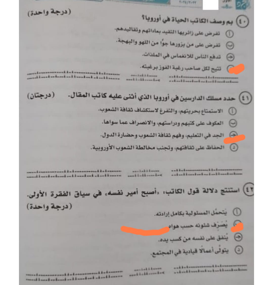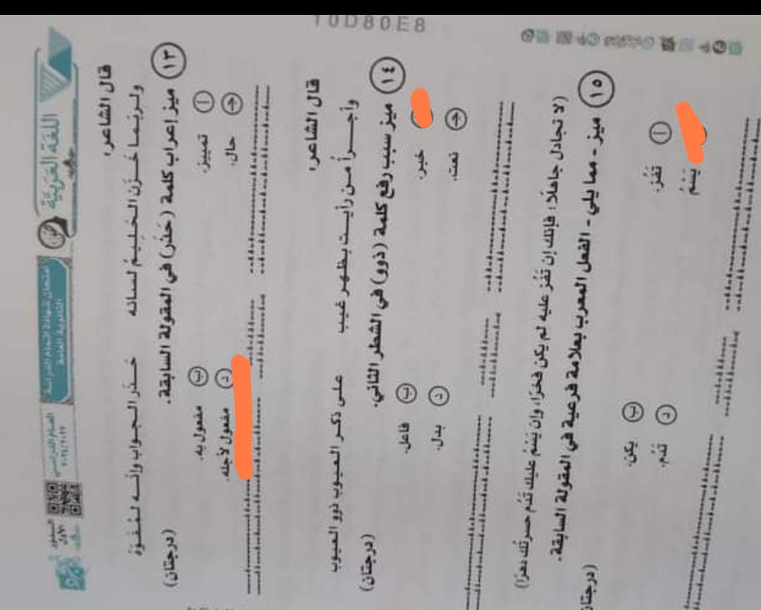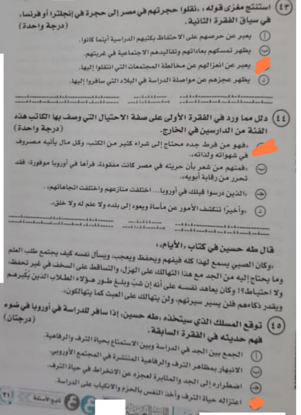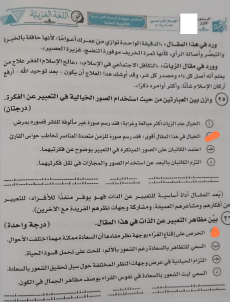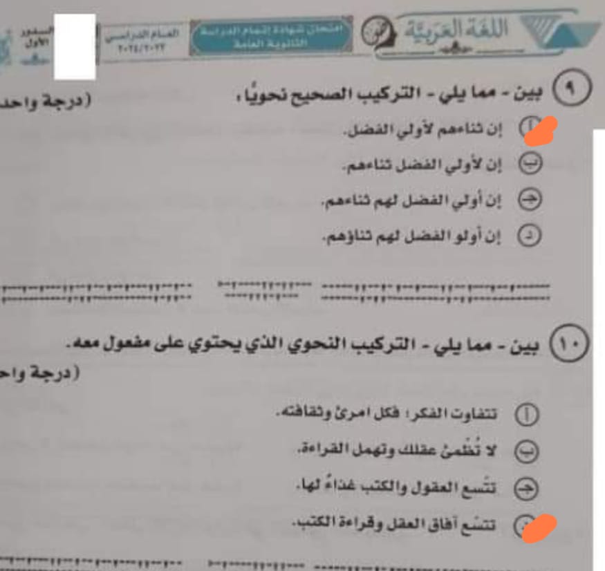 وجاءت إجابات أسئلة العربي لطلاب الثانوية العامة كالآتي: