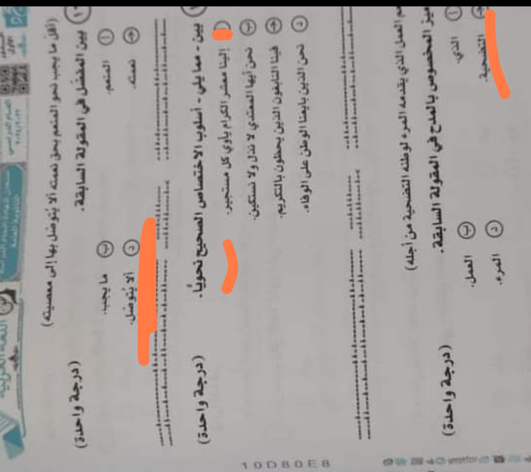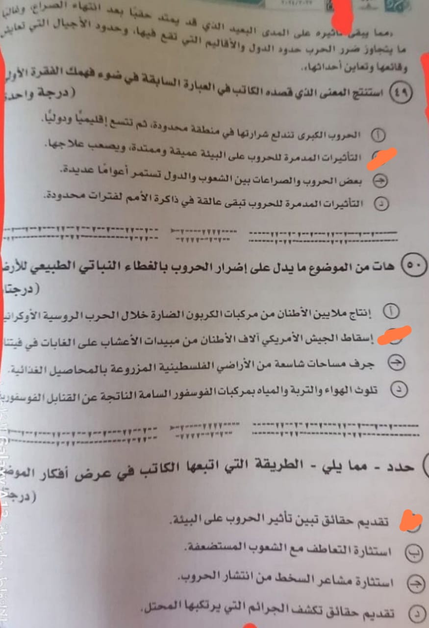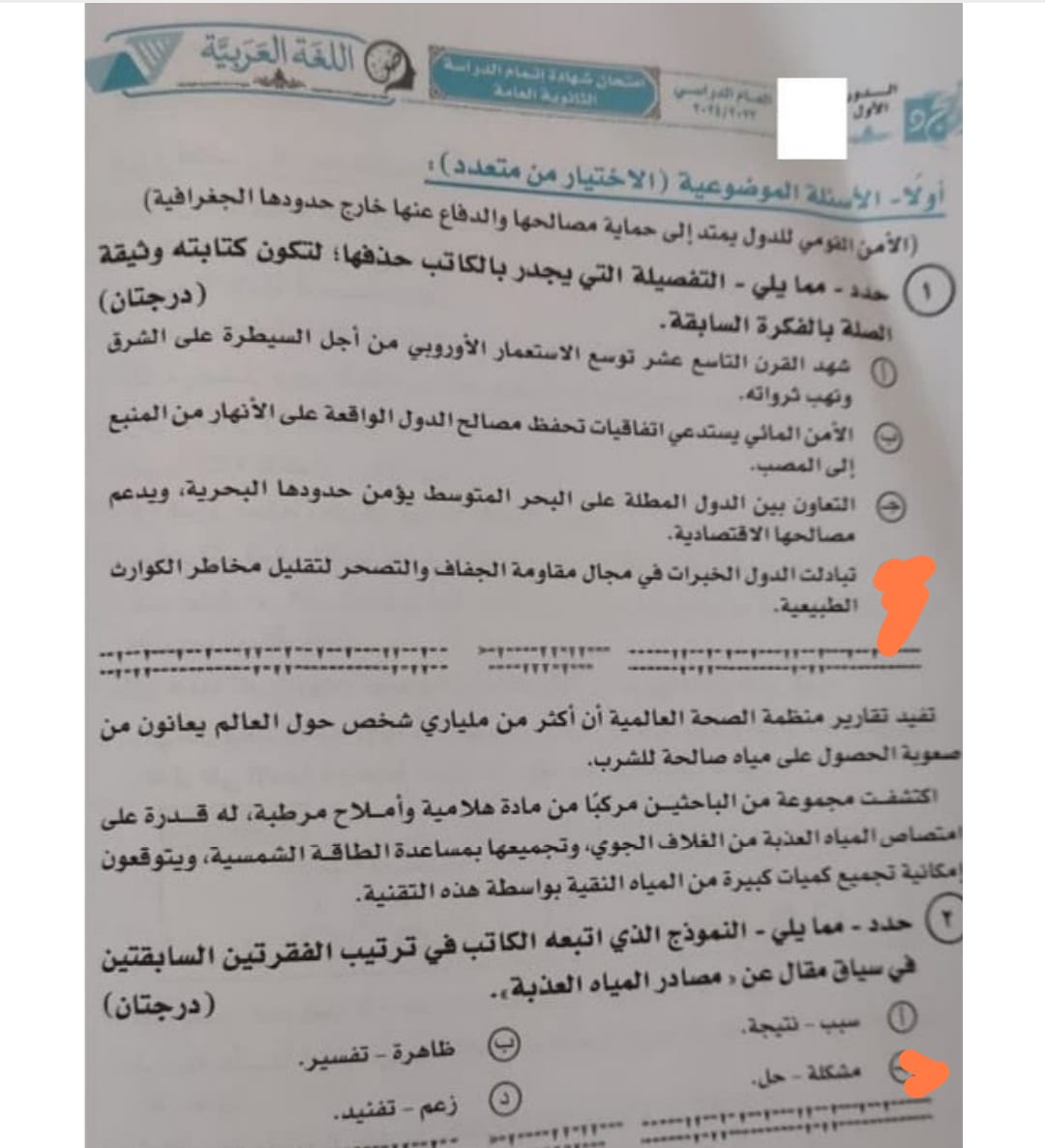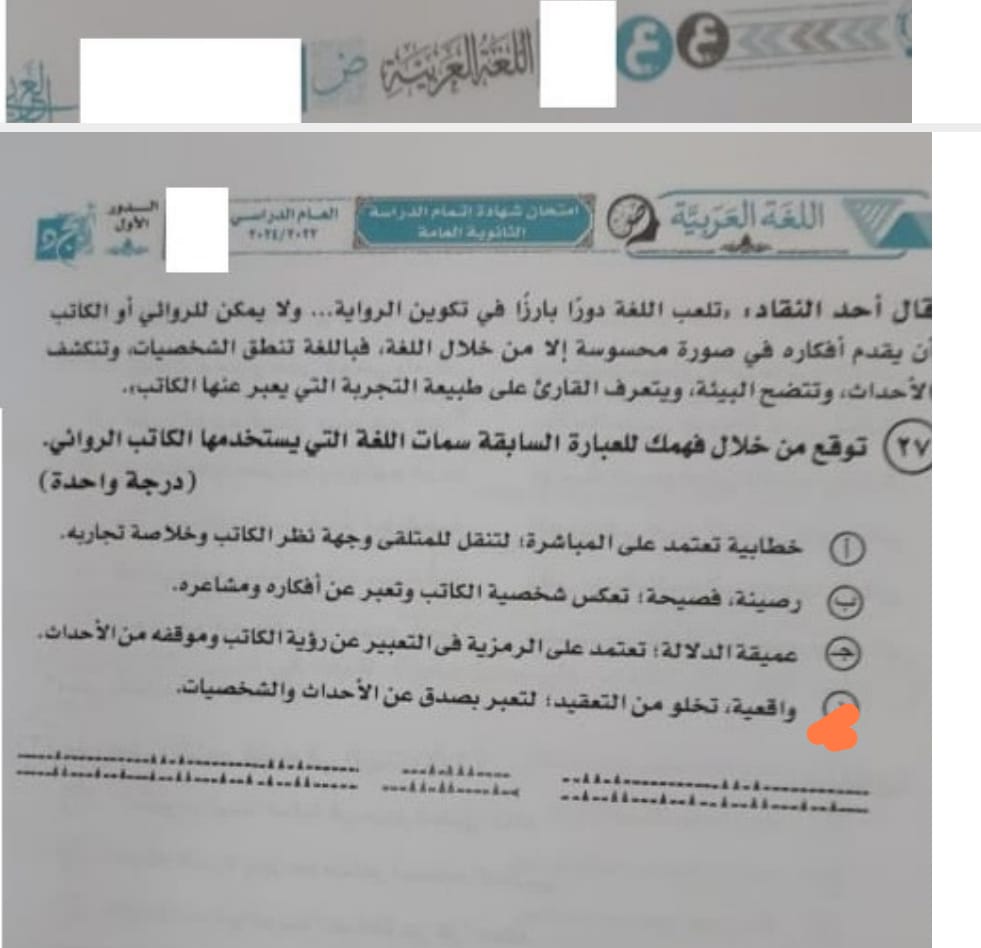 حل امتحان العربي لطلاب الثانوية العامة 2024